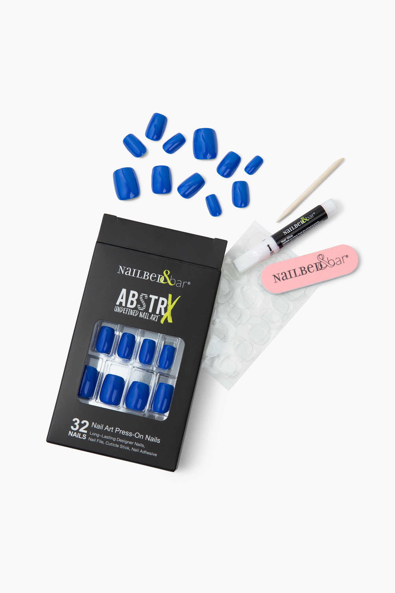 The ABSTRX way: Collection includes: 32 Nails/15 Inclusive Sizes/Nail Adhesive/ Nailbed & Bar Signature Nail File/Cuticle Stick (Press-on Pro Tip: Each nail is labeled with a size from 0-15, making it quick and easy to select the perfect size for each nail- no more guessing games)